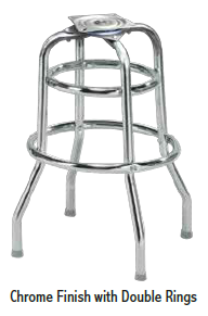 Finishes available include chrome with single or double rings, or black lags with chrome footrest.